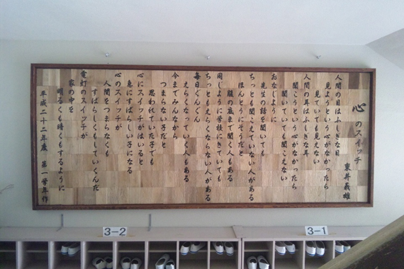 取り付けに行った際に学年主任の先生とお話しする機会があり、完成した額が生徒さん達に気に入っていただけたとのことでした。